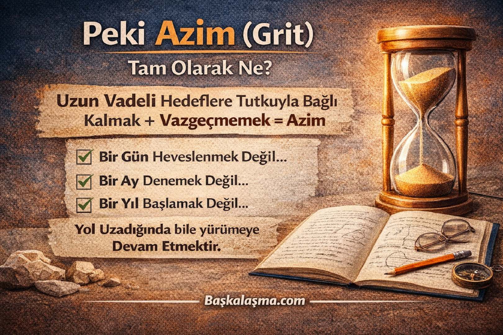Azim = uzun vadeli hedeflere tutkuyla bağlı kalmak + vazgeçmemek