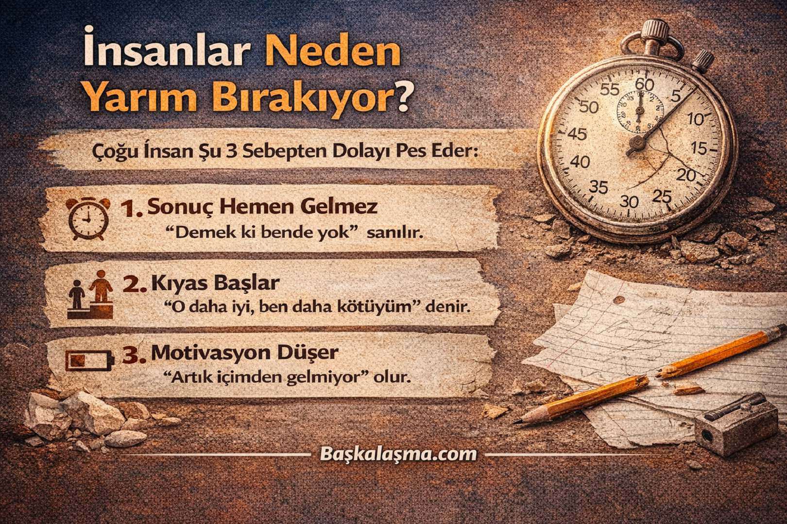 Çoğu insanın yarım bırakmasının sebebi “yetersizlik” değildir.